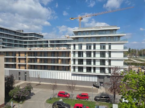 XIII. kerületben, Vizafogón, a Duna-part közelében, prémium kategóriás lakóparkban eladó egy 54 m²-es + 5 m² erkélyes, kétszobás, nyugati tájolású, I. emeleti új építésű lakás.